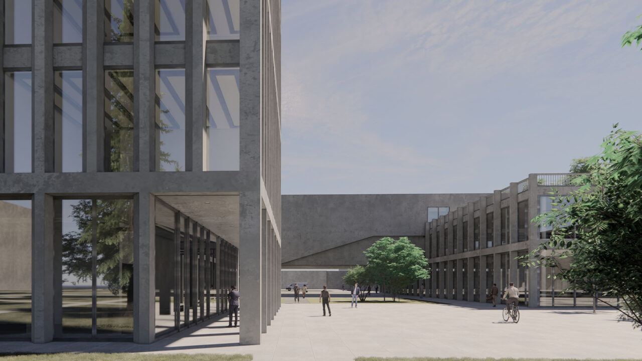 Inspired by Milanese modernism, the façade features precast panels in a metallic Ceppo di Gré tone, paired with a curtain wall system and steel structure. A suspended bridge auditorium presented the key structural challenge. The design opens the block to the city and includes outdoor terraces and flexible study areas, reinforcing the university’s mission of accessibility